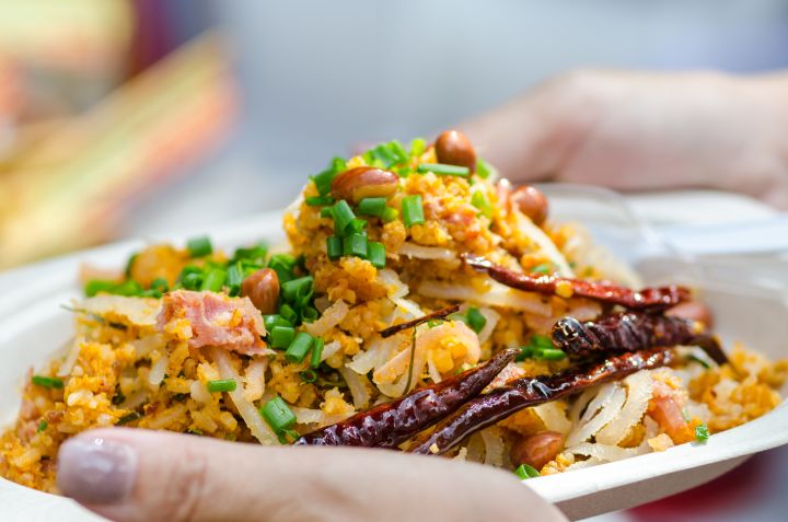 店先で、揚げたご飯のかたまり、ネーム、ピーナッツ、ハーブ、唐辛子などをその場で混ぜている店があれば、ネームクルックの可能性があります。作り置きよりも、注文後に混ぜてくれる店の方が香ばしさと食感を楽しみやすいです。