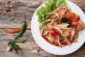 特にバンコクやチェンマイなど大都市では、ソムタム専門店や屋台が豊富で、フレッシュなシーフードを使った一皿を楽しめます。